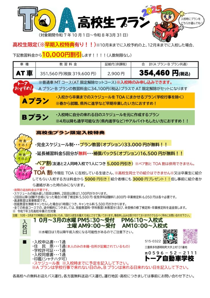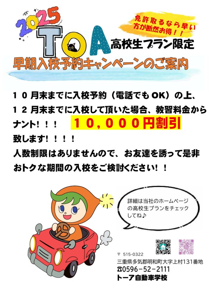 お得な高校生プラン登場!!(早期入校特典有ります)